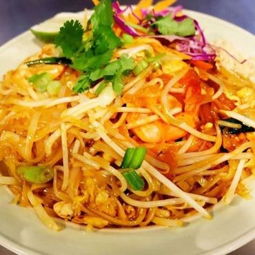 Thin Noodle with Tamarind Sauce Topped with Bean Sprouts and Ground Peanuts