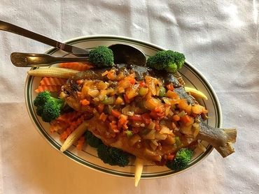 Whole Fish with Sweet and Sour Sauce, Onion, Celery, Bell Pepper